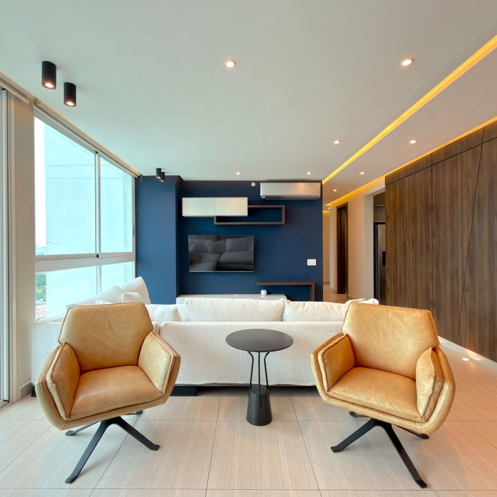 La unidad destaca por sus acabados contemporáneos y ventanales de piso a techo que llenan los espacios de luz natural. Es una opción ideal para quienes buscan una residencia céntrica, con un toque de lujo y todas las comodidades necesarias para el día a día.