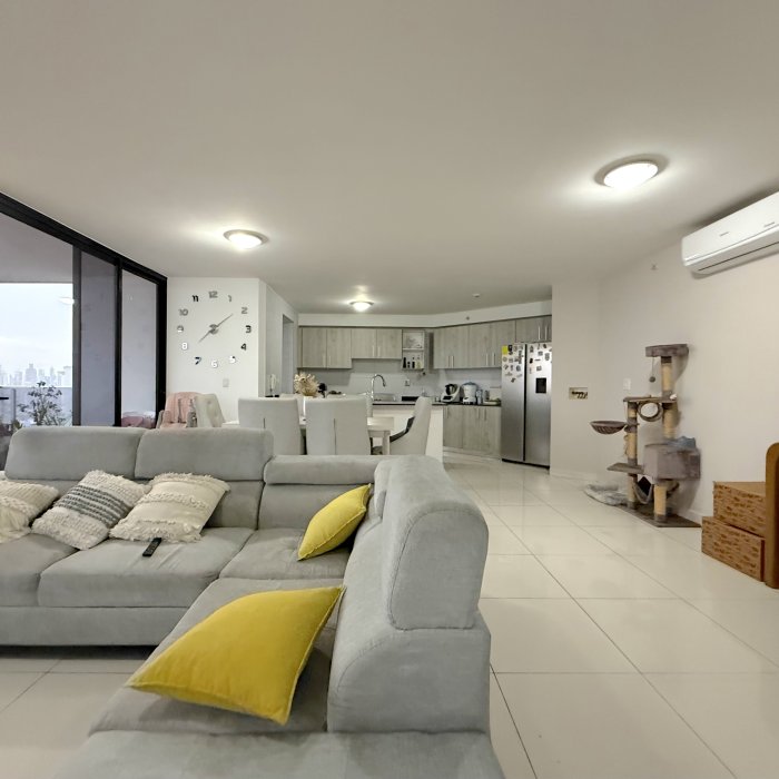 Esta ubicado a solo unos pasos de los puntos principales y mas destacados de la Ciudad de Panama. Cerca de escuelas, centros comerciales, bancos, clínicas hospitalarias y supermercados, esta lleno de comodidades que seguramente te hará sentir grandioso, ubicado en un piso medio de la torre y con hermosa vista hacia la ciudad.