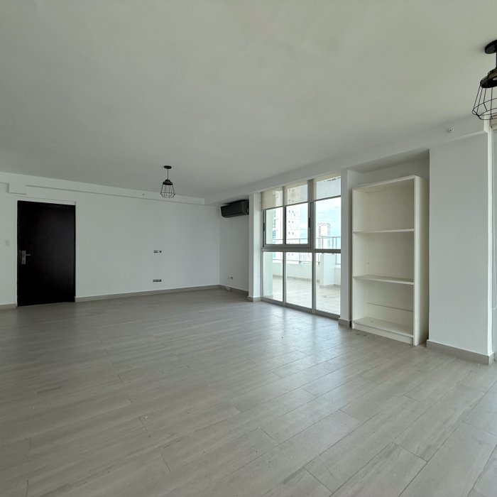 Cuenta con 3 habitaciones, 4 baños, cuarto y baño de servicio, sala , comedor, lavandería, balcón, con linea blanca.